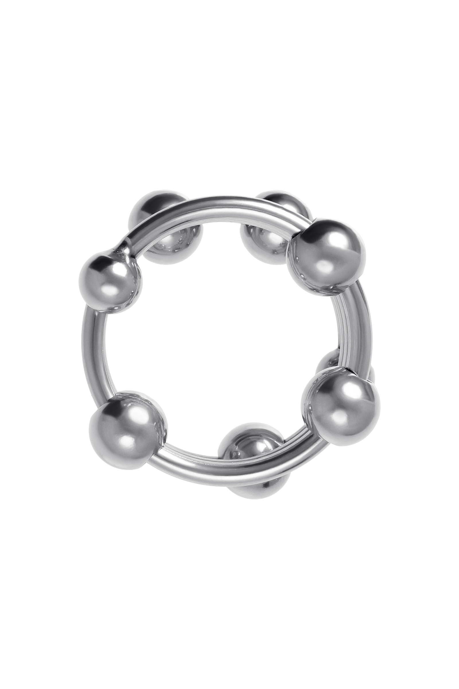 Металлическое кольцо для головки пениса многократно усилит удовольствие обоих партнеров. Кольцо выполнено в виде спирали с многочисленными подвижными бусинами, которые стимулируют самые чувствительные зоны обоих партнеров. При каждом движении шарики массируют уздечку, вход во влагалище и зону G, делая секс более захватывающим. Кольцо фиксируется под головкой полового члена, благодаря чему головка становится более твердой, выраженной и особо чувствительной, а эрекция – продолжительной. Металл – один из самых безопасных и экологичных материалов, его можно использовать со всеми видами смазок и он прост в уходе. Кольцо из металла – особо прочное и тугое, добавьте немного лубриканта для комфортного надевания и снятия. Как использовать: Выбирайте кольцо подходящего диаметра, чтобы испытать максимальное удовольствие. Наденьте кольцо на половой член в эрегированном состоянии, для этого добавьте немного лубриканта. Зафиксируйте кольцо под головкой пениса и убедитесь, что оно плотно прилегает. Не допускайте дискомфорта и не носите кольцо более 30 минут. Как подобрать размер: Кольцо не должно быть слишком тугим или болтаться, но при этом оно должно легко надеваться и сниматься. Чтобы правильно подобрать нужный диаметр кольца, снимите 2 мерки с полового члена. Оберните мягкую измерительную ленту вокруг пениса чуть ниже головки и запишите полученные значения: одно - в расслабленном состоянии, другое – в эрегированном. Сложите ваши мерки, разделите на 2, и затем разделите на 3,14. Полученное значение – оптимальный диаметр подходящего вам кольца. Для дополнительной безопасности измерьте самую широкую часть на головке пениса и разделите на 3,14. Зная диаметр шляпки пениса, вы сможете подобрать достаточно удобное кольцо, которое не будет соскальзывать.Рекомендуем использовать до и после применения - дезинфицирующее средство для игрушки, чтобы обеспечить длительное скольжение и комфорт интимных отношений, рекомендуем использовать анальную смазку на водной основе. Хранить при температуре не выше 35 градусов, избегать попадания прямых солнечных лучей.