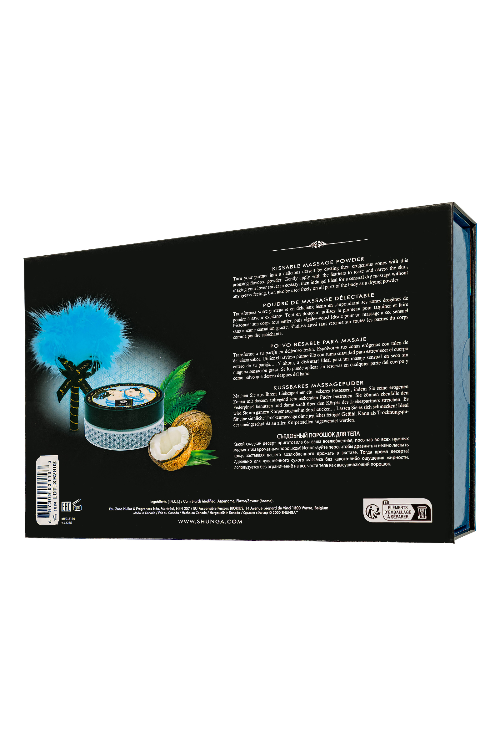 Погрузитесь в экзотику с Kissable Massage Powder от бренда Шунга, со вкусом “Кокосовое волнение”. Этот съедобный массажный порошок превращает ваши интимные моменты в нечто особенное, пробуждая страсть с каждым прикосновением и поцелуем. Без добавления сахара, веганский и безопасный для употребления, этот порошок дарит невероятное удовольствие, его можно смело лизать, слизывать, целовать и проглатывать. Благодаря подсушивающему эффекту, кожа остается свежей, а приятный аромат и вкус нежного кокоса наполняют пространство тропическими нотками. Массажный порошок идеально подходит для чувственного сухого массажа, не оставляя жирных следов. Воспользуйтесь мягким пером, входящим в комплект, чтобы дразнить и ласкать кожу, усиливая возбуждение и даря партнеру незабываемые моменты. Посыпьте небольшое количество порошка на тело или простыни перед страстной ночью, чтобы усилить ощущения и избежать трения. Используйте эту пудру для того, чтобы наслаждаться игривым взаимодействием, где каждый поцелуй и прикосновение становится еще более сладким и чувственным. Продукт легко смывается водой, оставляя кожу мягкой и освеженной. Инструкция по применению: Нанесите небольшое количество пудры на кожу или постельное белье. Используйте мягкое перо для равномерного распределения порошка по эрогенным зонам. Наслаждайтесь нежными прикосновениями и ароматом кокоса. Смело целуйте, слизывайте и проглатывайте пудру, наслаждаясь её вкусом. Легко смывается водой. Kissable Massage Powder “Кокосовое волнение” от Shunga — идеальный способ сделать ваши чувственные моменты еще более волнующими и сладкими!