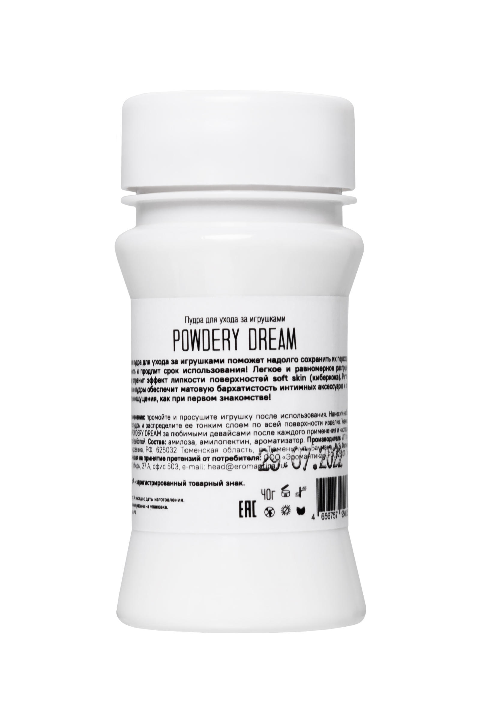 Невесомая пудра Эромантика с нежным цветочно-фруктовым ароматом для ухода за игрушками поможет надолго сохранить их первозданную эластичность и продлит срок использования! Легкое и равномерное распределение средства устранит эффект липкости поверхностей soft skin (киберкожа). Регулярное применение пудры обеспечит матовую бархатистость интимных аксессуаров и подарит комфортные ощущения, как при первом знакомстве! Способ применения: промойте и просушите игрушку после использования. Нанесите небольшое количество пудры и распределите ее тонким слоем по всей поверхности изделия. Ухаживайте с помощью Powdery DREAM за любимыми девайсами после каждого применения и наслаждайтесь ее приятной заботой.