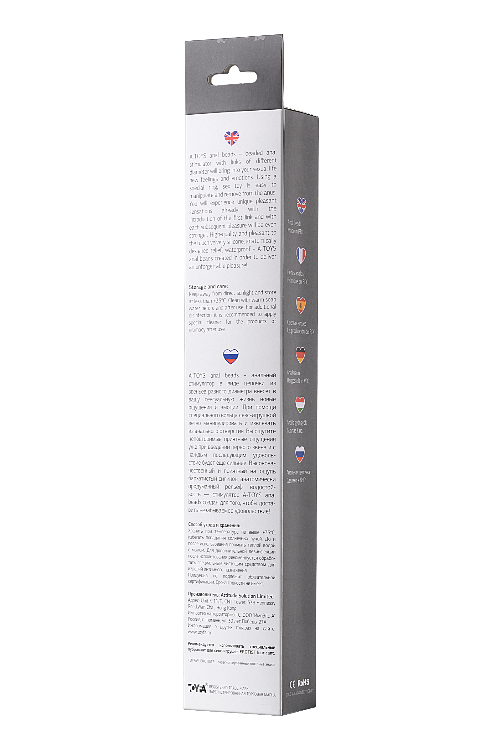 Тойфа А-Тойс anal beads - анальный стимулятор в виде цепочки из звеньев разного диаметра внесет в вашу сексуальную жизнь новые ощущения и эмоции. При помощи специального кольца секс-игрушкой легко манипулировать и извлекать из анального отверстия. Вы ощутите неповторимые приятные ощущения уже при введении первого звена и с каждым последующим удовольствие будет еще сильнее. Высококачественный и приятный на ощупь бархатистый силикон, aнатомически продуманный рельеф, водостойкость — стимулятор A-TOYS anal beads создан для того, чтобы доставить незабываемое удовольствие!Рекомендуем использовать до и после применения - дезинфицирующее средство для игрушки, чтобы обеспечить длительное скольжение и комфорт интимных отношений, рекомендуем использовать анальную смазку на водной основе.Хранить при температуре не выше 35 градусов, избегать попадания прямых солнечных лучей. Перед хранением необходимо хорошо просушить